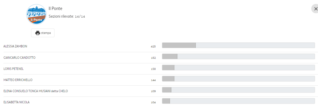 Determinanti gli oltre millequattrocento voti di Federica Maule, già capogruppo della lista Il Ponte dal 2012 al 2017, poi parte della giunta comunale dal 2017 alla fine del 2021 quando, dopo aver perso le consultazioni interne che hanno portato alla scelta di Andrea Zampar come candidato Sindaco, ha deciso di dimettersi dalla carica per tentare un’impresa solitaria che ha ottenuto come unico risultato quello di decretare la sconfitta della lista che si era proposta di guidare. Coerenza.
